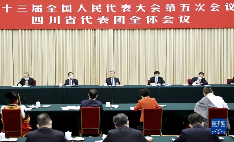 3月5日,中共中央政治局常委、全国政协主席汪洋参加十三届全国人大五次会议四川代表团的审议。新华社记者 刘彬 摄