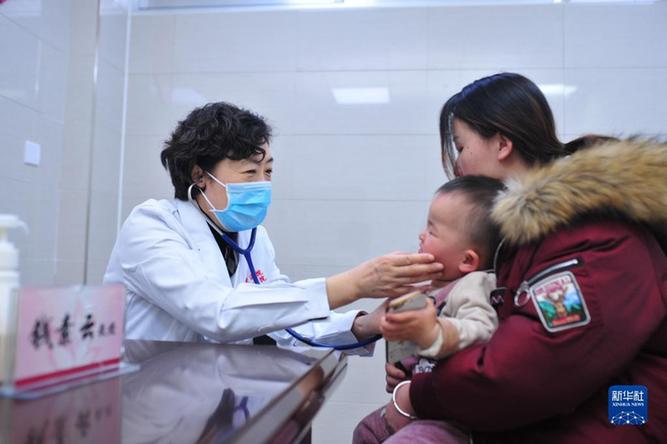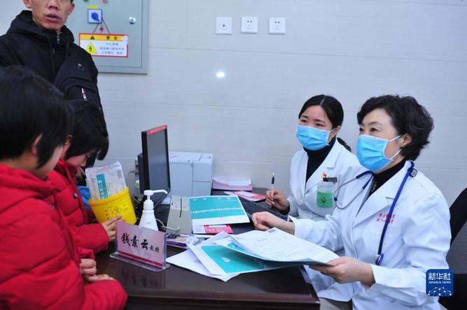 钱素云在陕西省榆林市儿童医院参与义诊活动(2019年1月摄)。新华社发