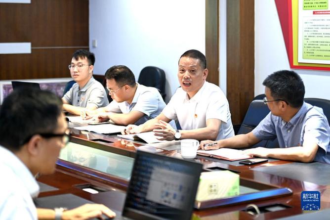 在浙江省宁波市奉化区萧王庙街道滕头村的会议室里,傅平均(右二)与村干部、村民代表参加一场“未来乡村”建设讨论会,具体讨论新建民居地下室面积、花园规划等问题(9月16日摄)。新华社记者黄宗治 摄
