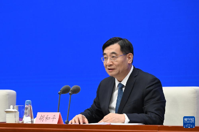 6月24日,国务院新闻办公室举行新闻发布会,中央宣传部分管日常工作的副部长胡和平,阅兵领导小组办公室副主任、中央军委联合参谋部作战局少将副局长吴泽棵介绍中国人民抗日战争暨世界反法西斯战争胜利80周年纪念活动总体安排,并答记者问。这是胡和平在介绍情况。新华社记者金良快 摄