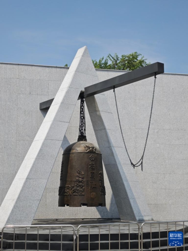 8月15日在辽宁沈阳“九·一八”历史博物馆拍摄的“勿忘国耻”警世钟。 新华社记者 王承昊 摄