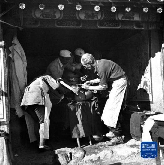 1938年,白求恩来到中国革命根据地延安,不久赴晋察冀边区。他以精湛的医疗技术为抗日军民服务,并培养了大批医务人员,其牺牲精神、工作热忱和专业素养,均称模范。
