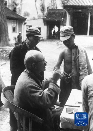 1938年,白求恩来到中国革命根据地延安,不久赴晋察冀边区。他以精湛的医疗技术为抗日军民服务,并培养了大批医务人员,其牺牲精神、工作热忱和专业素养,均称模范。