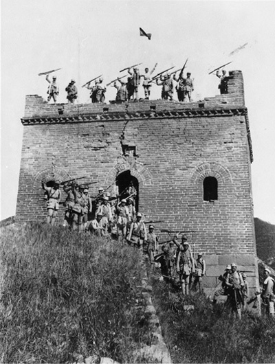 图为百团大战中攻破河北涞源东团堡后欢呼胜利的八路军战士。
