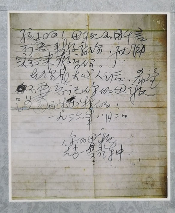 陈掖贤(宁儿)抄写的赵一曼的遗书。(受访者供图)