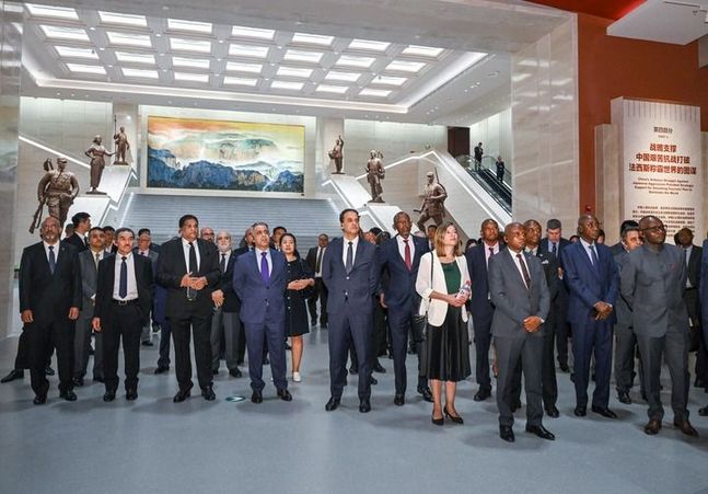 驻华外交官来到中国人民抗日战争纪念馆,参观纪念中国人民抗日战争暨世界反法西斯战争胜利80周年主题展览《为了民族解放与世界和平》(2025年7月17日摄)。新华社记者陈晔华 摄