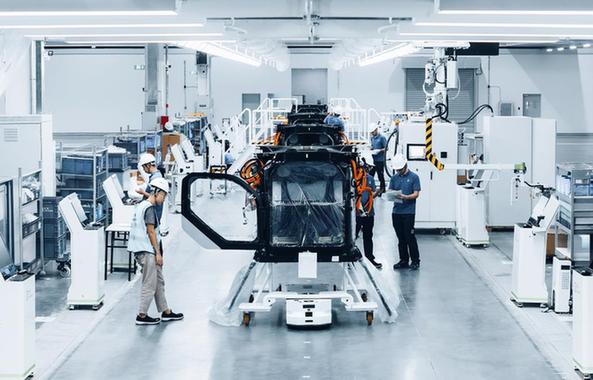 图为汇天飞行汽车量产工厂总装车间。(采访对象供图)