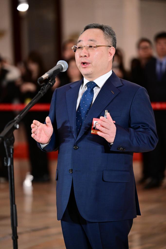 3月11日,全国政协十四届四次会议第三场“委员通道”集体采访活动在北京人民大会堂举行。这是全国政协委员刘成勇接受媒体采访。