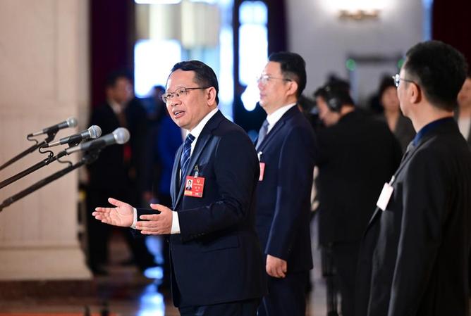 3月11日,全国政协十四届四次会议第三场“委员通道”集体采访活动在北京人民大会堂举行。这是全国政协委员陈季敏接受媒体采访。